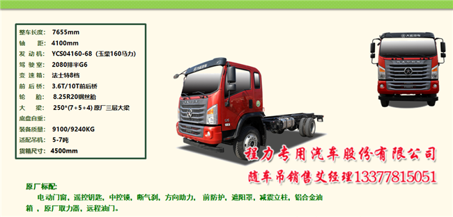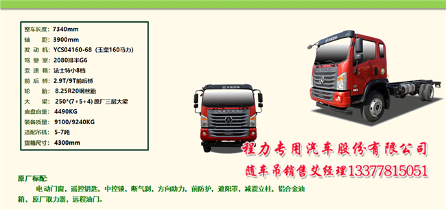 五款大運(yùn)隨車吊適合拉電桿用戶和拉樓板用戶,配7噸吊機(jī)。