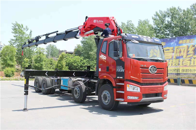 折臂前四后八解放隨車吊配40噸折臂吊機參數(shù)不超重:大柴320馬力/460馬力,新款駕駛室、電動玻璃升降、電動后視鏡、氣囊座椅,行車記錄儀,自動空調(diào)、400L鋼油箱、駕駛室后兩點空氣懸置、電動液壓舉升裝置、電子手油門、懸架9/9/10、吊機上裝連接板、遠程啟停功能.整車外形。