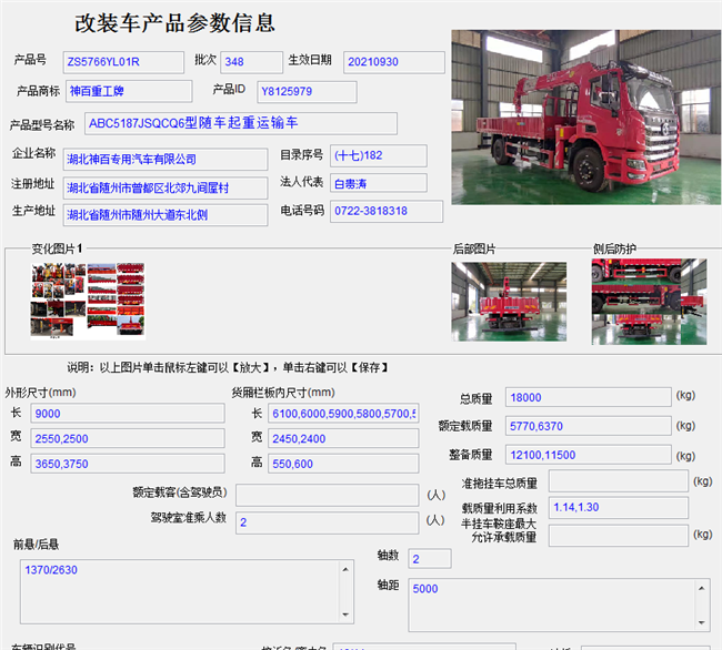 產(chǎn)品名稱 ABC5187JSQCQ6型隨車(chē)起重運(yùn)輸車(chē)