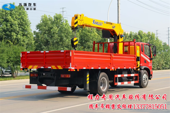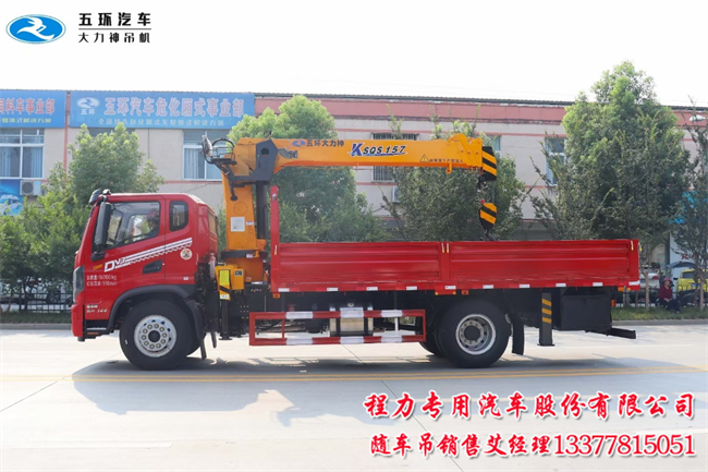 五環(huán)大力神6.3噸東風(fēng)華神隨車吊上裝配置:大力神6.3噸四節(jié)臂吊機(jī),最大工作11米舉升高度13米全液壓全回轉(zhuǎn),下位操作,可選裝上操作。