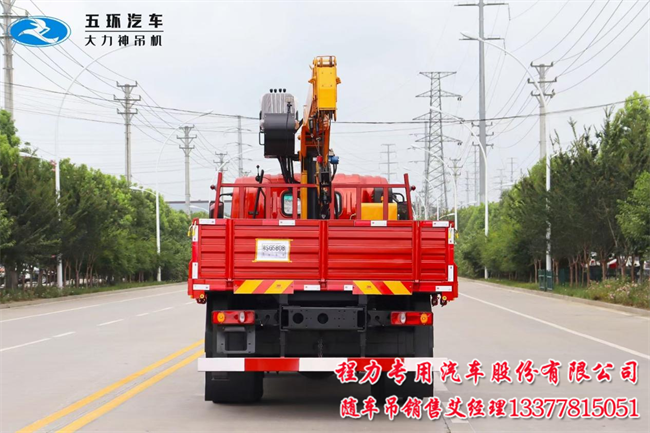 5噸五環(huán)大力神隨車吊上裝配置:大力神5噸四節(jié)臂吊機(jī),最大工作11米舉升高度13米,全液壓全回轉(zhuǎn),上位操作,選裝通副梁,單腔液壓后支腿。
