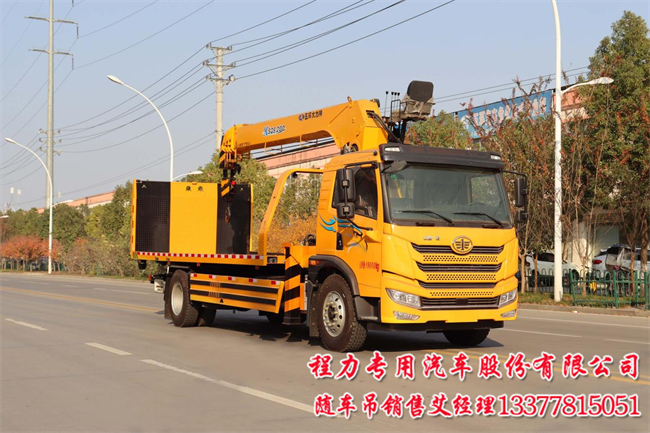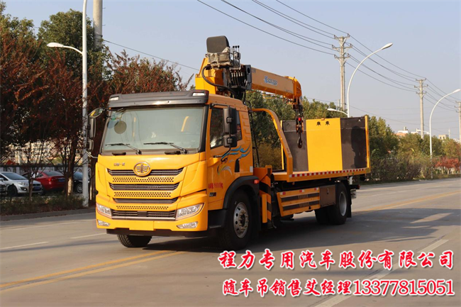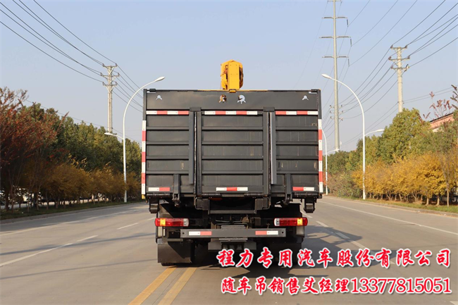 大力神8噸隨車吊上裝:大力神8噸四節(jié)臂雙聯(lián)泵吊機(jī),工作半徑13.5米,舉升高度15.5米。