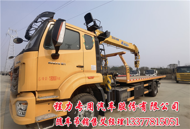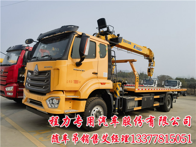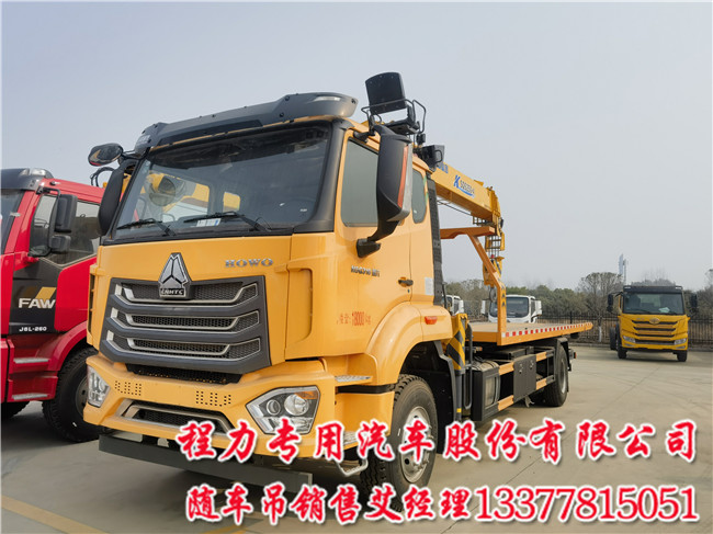 重汽豪沃8噸隨車吊拖車一拖二平板救援車