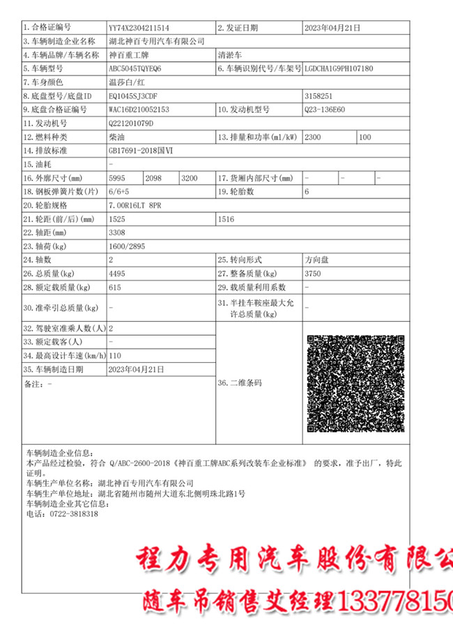整車公告:ABC5045TQYEQ6