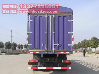 選裝僅高度不同的駕駛室,高頂駕駛室頂部氣喇叭為選裝件.倉柵頂部到貨廂底板的內(nèi)部高度為2400mm,2500mm.選裝后視鏡;隨底盤選裝前下視鏡安裝位置.選裝箱板結(jié)構(gòu),選裝后門. |