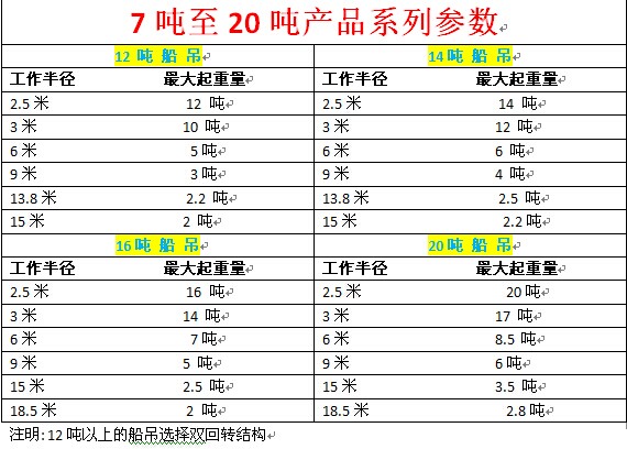 8噸,9噸,10噸,12噸,14噸,16噸,20噸船吊