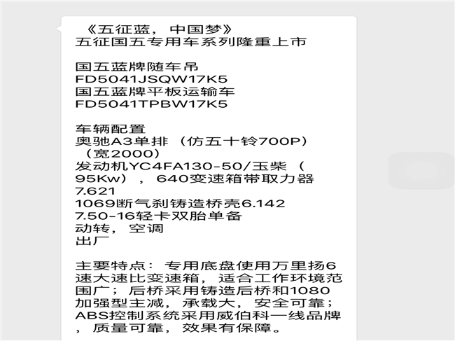 藍(lán)牌隨車吊國五五征藍(lán)牌隨車吊主要配置:國五奧馳D3單排C.玉柴130.6檔變速箱,7噸后橋,7.50-16輪胎,斷氣剎,空調(diào),電動門窗,3360?梢耘湫旃せ虺塘Φ鯔C4噸或五噸直折臂,當(dāng)然要加裝多功能隨車吊是當(dāng)當(dāng)?shù)模灰脩粝氲玫,我們廠家就能做得到,但由于按用戶需求加裝的,整車超重或超長,用戶在上戶時一定要找關(guān)系就是黃牛。
