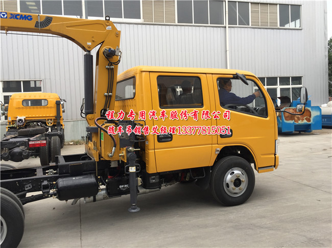 2噸三節(jié)東風(fēng)雙排隨車吊上藍(lán)牌帶吊貨車,徐工牌XZJ5040JSQD5型隨車起重運(yùn)輸車。徐工吊機(jī),高度是9.5米,半徑是7.5米。