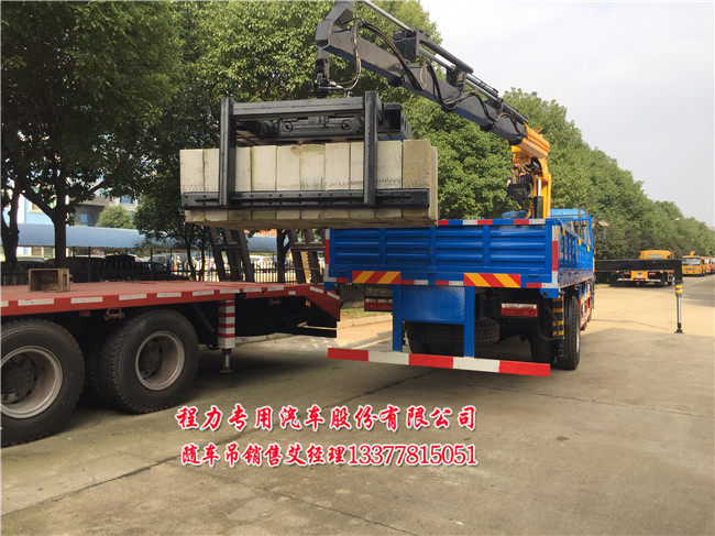 夾磚隨車吊小三軸夾磚隨車起重運輸車配的是12噸折臂吊機: