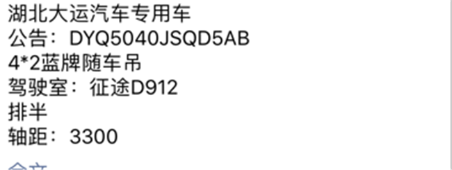 排半藍(lán)牌隨車吊軸距(mm) 3300
