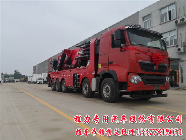 大噸位折臂360噸江威隨車吊_大型180噸江威隨車吊大臂長17.7米,高度為20米左右,配免征重汽豪沃五軸隨車吊專用底盤,380馬力與440馬力可選,1200輪胎鋼絲胎.