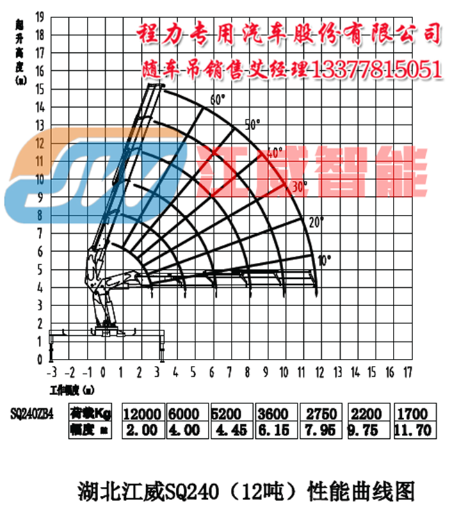 折臂12噸江威隨車(chē)吊吊機(jī)性能曲線圖