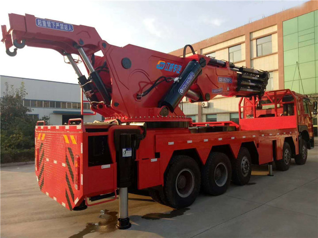 大噸位SQ6000江威隨車吊150噸重汽豪沃五軸免征隨車吊專用底盤,380馬力,1200鋼絲胎,SQ6000ZB6+1是6節(jié)申縮臂加一節(jié)手拉臂,臂長15.5米,高度為18.5米,吊機(jī)自重35噸,在四米吊150噸的大型折臂吊機(jī).