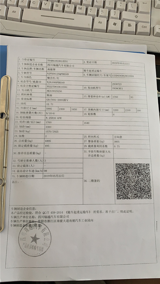 包上牌南駿藍(lán)牌隨車吊瑞吉豪華全包內(nèi)飾駕駛室(半懸。辉苾(nèi)YN38CRE1(130馬力)發(fā)動機(jī);萬里揚(yáng)五檔帶副變速箱;后橋8T重載(145盆角齒);鋼板彈簧采用9/10+8加厚型; |