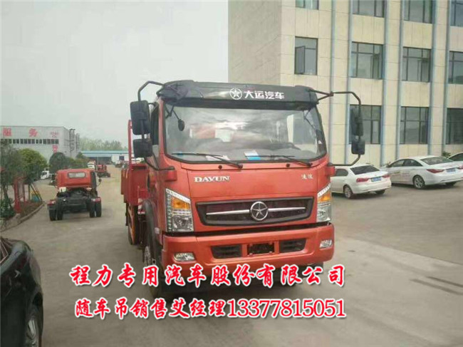 大運多功能隨車吊4400軸距.玉柴160馬力,2080排半運途駕駛室,陜齒小八檔變速箱,10噸后橋,8.25R20鋼絲胎,280*(8+6)原廠局部三層大梁。