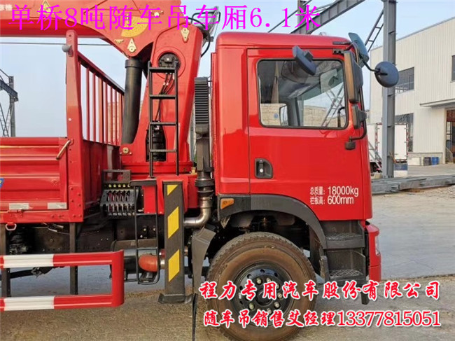排半世技卡特8噸6.1米隨車吊 ,只能配徐工G型吊臂,因吊機(jī)底座窄一些,注明一下.