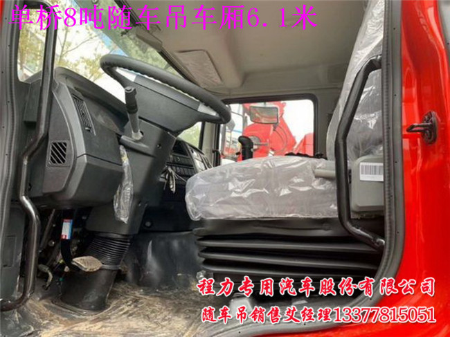 單排解放8噸6.1米隨車吊配置:10.00R20 .電動(dòng)玻璃,.八檔變速箱.大柴220馬力,氣囊座椅.