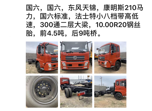 8噸6.3噸東風(fēng)天錦隨車吊配置:康機(jī)210馬力國六排放,法士特小八檔,1000鋼絲胎.