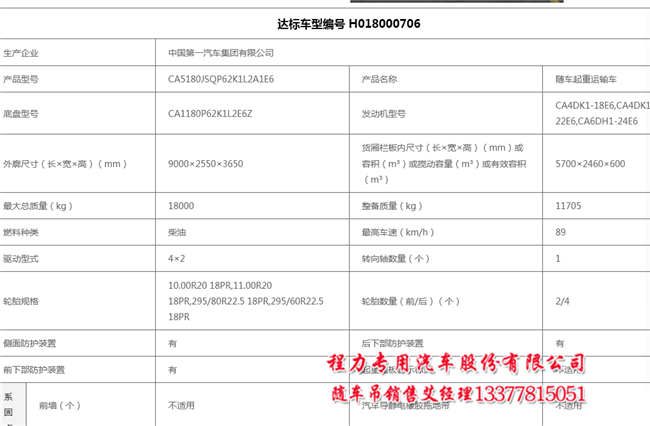 6.3噸8噸解放隨車(chē)吊公告查詢(xún)圖