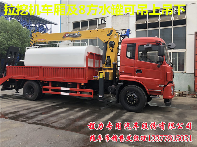 D3隨車吊東風(fēng)暢行隨車吊 帶多功能灑水罐吊下吊上加1.8萬,帶平板拉挖機車廂加7000元。