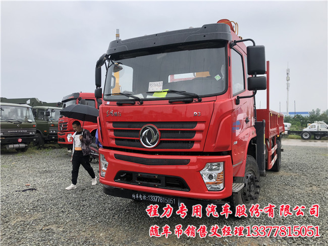 10噸D3隨車吊8噸東風(fēng)暢行隨車吊配置:帶隨車吊專用取力器及遠程油門,新法規(guī)。陜齒小八檔(8JS85E)變速箱,車架300mm通體三層,10.00R20鋼絲胎,帶原廠ABS、電動玻璃、下防護。