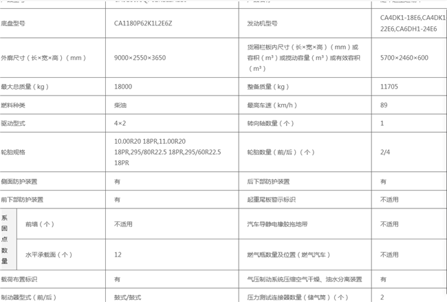 底盤型號:CA5180JSQP62K1L2A1E6 額定質(zhì)量:6100
