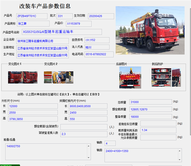 底盤型號:XGS5312JSQJ6 額定質(zhì)量:12805