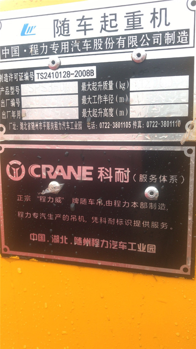 拉挖機程力專汽隨車吊品牌:  認準科耐品牌,吊機出廠時上面有兩個鋁牌才是真正程力專汽吊機。