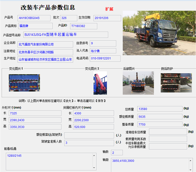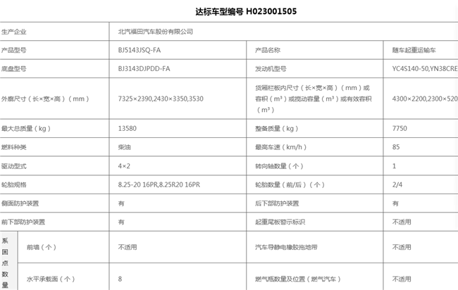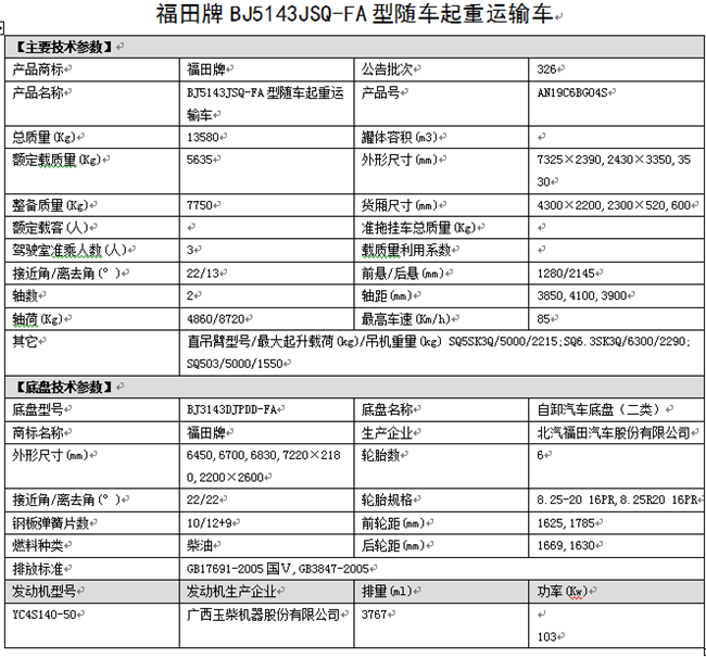 5噸6.3噸福田瑞沃隨車吊上圖為公告參數(shù)