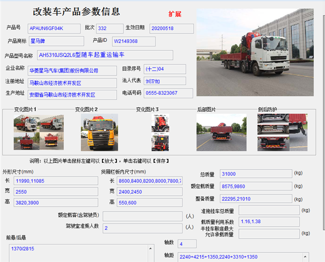 前四后八華菱隨車吊整備質(zhì)量:22295kg。自重公告參數(shù)大,配20噸吊機(jī)整車不超重,大噸位吊機(jī)首選