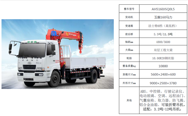 五軸重型起重機配置:AAA5530JQZHN6(10X4,五軸,國六),1850+3725+1375+1350,漢馬460馬力,電動門窗,中控鎖,斷氣剎,原廠空調,高檔豪華氣囊座椅,多功能方向盤,液晶顯示屏,遙控鑰匙,節(jié)油開關?傎|量:53噸。底盤型號:HN5530A46C7M6J(可改平板運輸車、起重機),12.00R2020PR,前橋7.5噸,中間采用浮動橋,雙后橋16噸,士特12檔