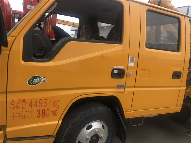 3.2噸雙排藍牌江鈴隨車吊配置:XGS5041JSQL6,可乘坐5人,排氣管前置,前盤碟剎限速ABS。7.00鋼絲胎,后橋3.5噸,帶剎車間隙自動調(diào)整。帶排氣制動,帶空調(diào),油剎,五檔箱,前橋2噸,助力轉(zhuǎn)向。