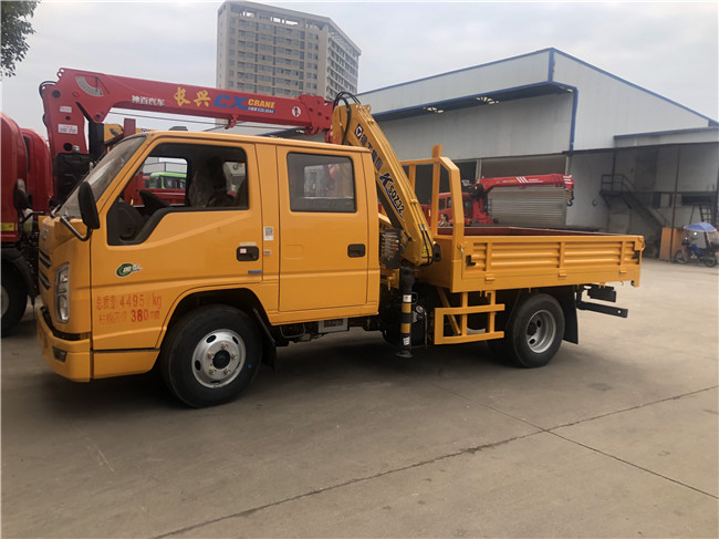 江鈴雙排藍牌隨車吊可以選直臂吊機二噸