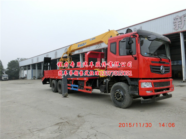 12噸G型世技卡特后雙橋隨車吊14噸后八輪世技卡特隨車吊配置:濰柴245馬力東風特商T702新款駕駛室.  11.00全車鋼絲輪胎,原裝取力器帶空調(diào) .帶氣囊坐椅 陜齒9變速箱帶高低檔,.尾部帶八字梁拖鉤 .加強型前橋5.5噸,加強后雙橋11.5噸,軸距4750+1300 MM /5850+1350MM 。帶ABS和行車記錄儀. 遠控油門. 300MM三層直通大梁中部斷開