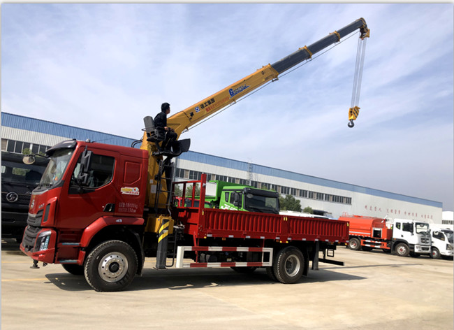 10噸G型乘龍隨車吊自調(diào)臂、免維護電池、160L鐵油箱,