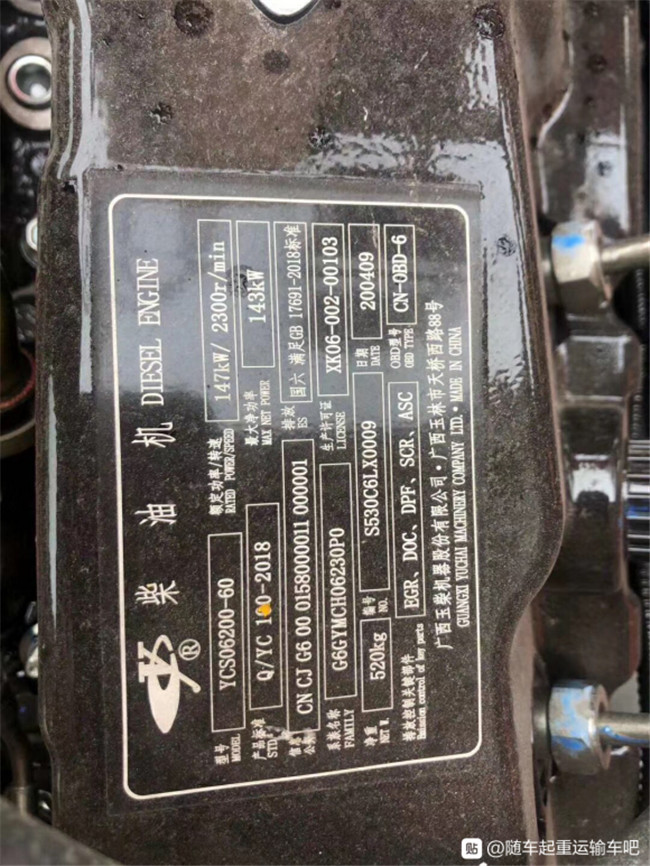 6米1國(guó)六世技卡特隨車吊 :國(guó)六發(fā)動(dòng)機(jī)鋁牌。
